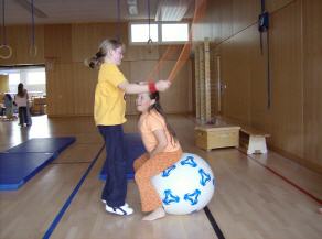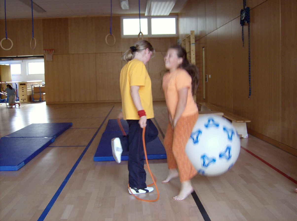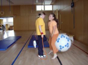 Nadine und Mona beim Seilspringen mit dem Hüpfball