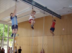 Tim, Jan und Pedro beim Seilklettern.